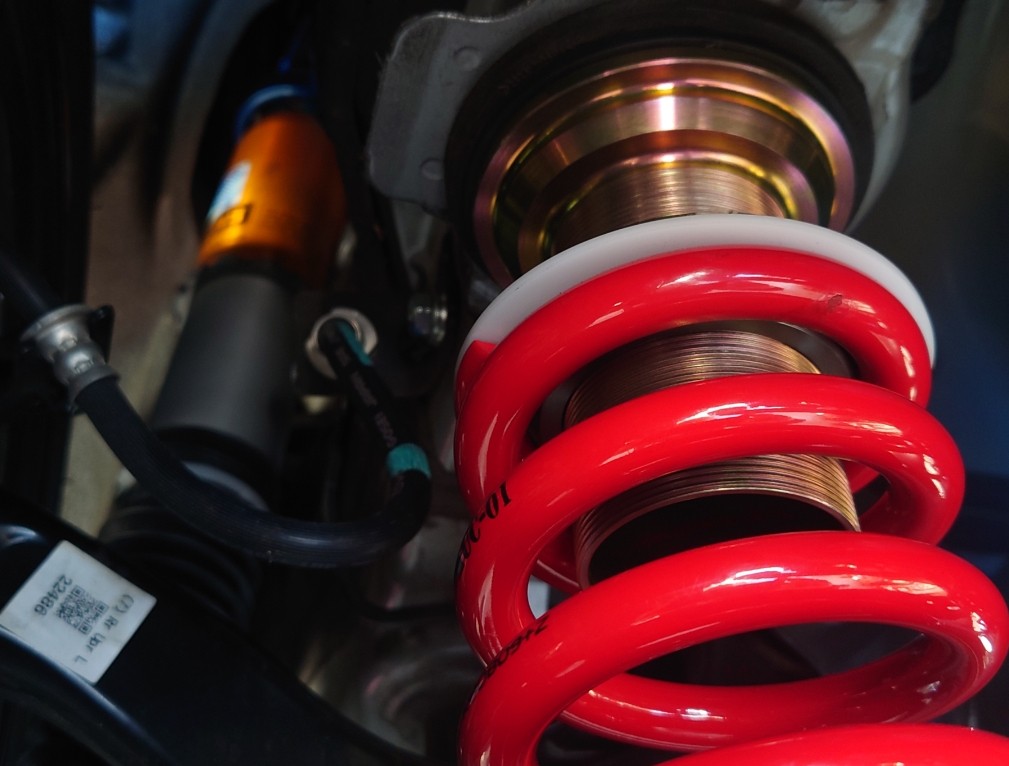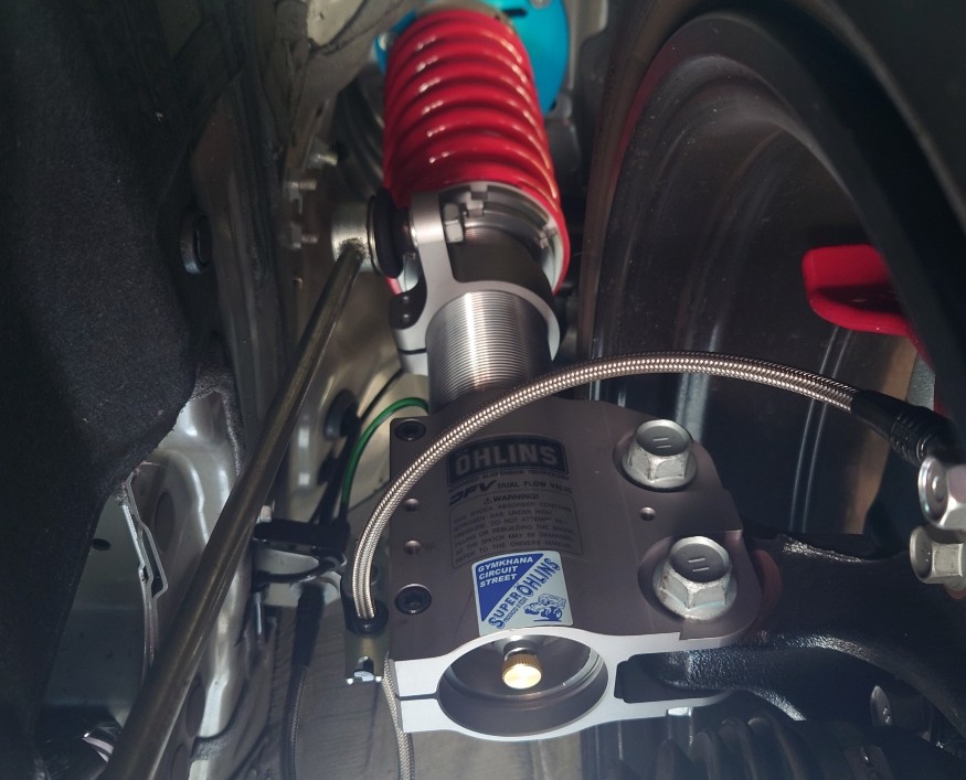 今までは他メーカーさんの脚を装着されていましたが、不具合があったそうで(外した際に確認出来ました)、どうせなら!ということでスーパーオーリンズをご購入いただきました。