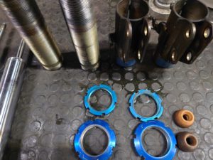 一時期、スチールケース&ブラケットタイプの全長調整式オーリンズが販売されていましたが、このタイプの全長調整タイプは、ブラケット部の調整部分が固着して回せなくなるトラブルが発生する確率がかなり高く、オーバーホールをご依頼いただいた約8割が固着してしまっています。